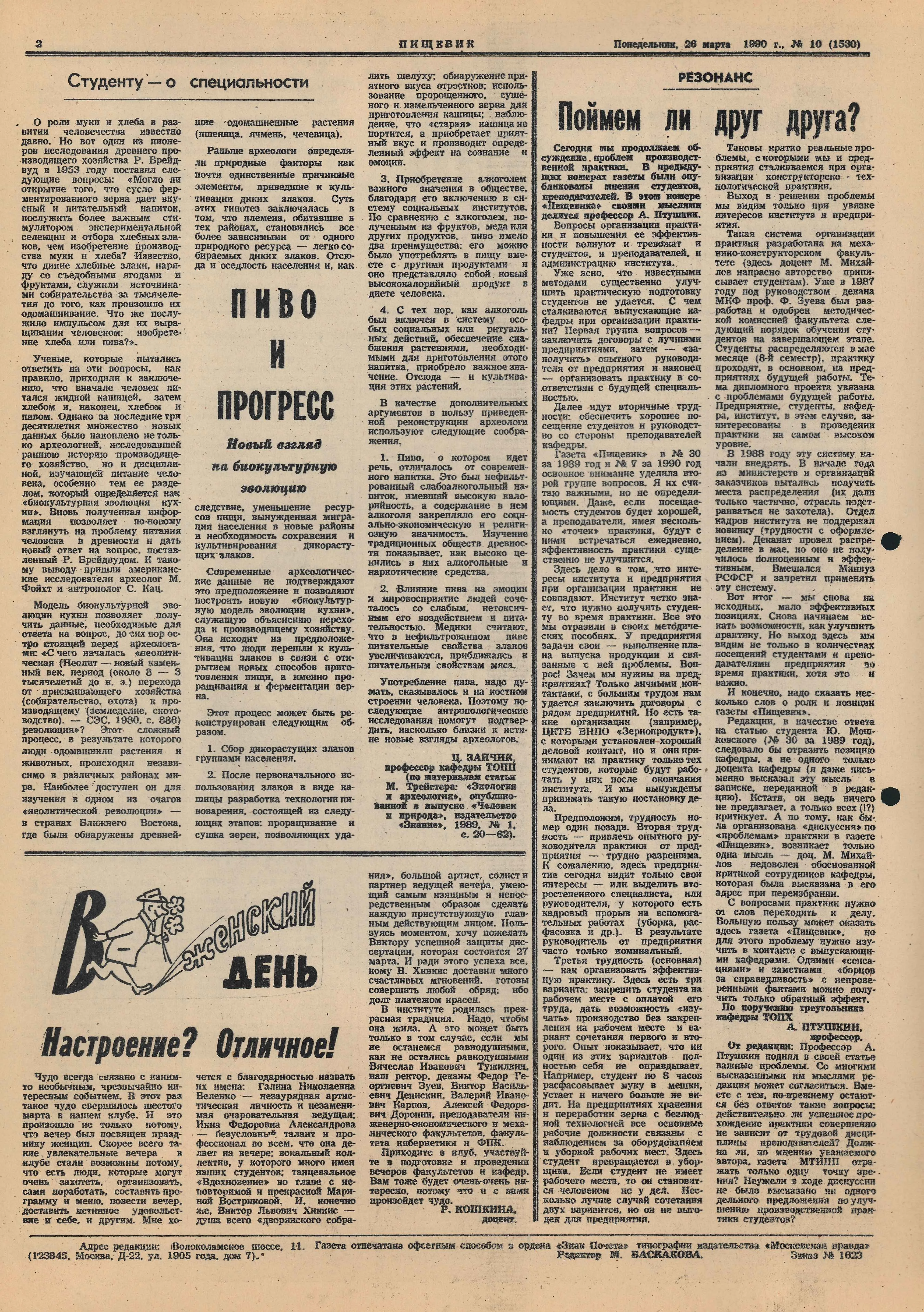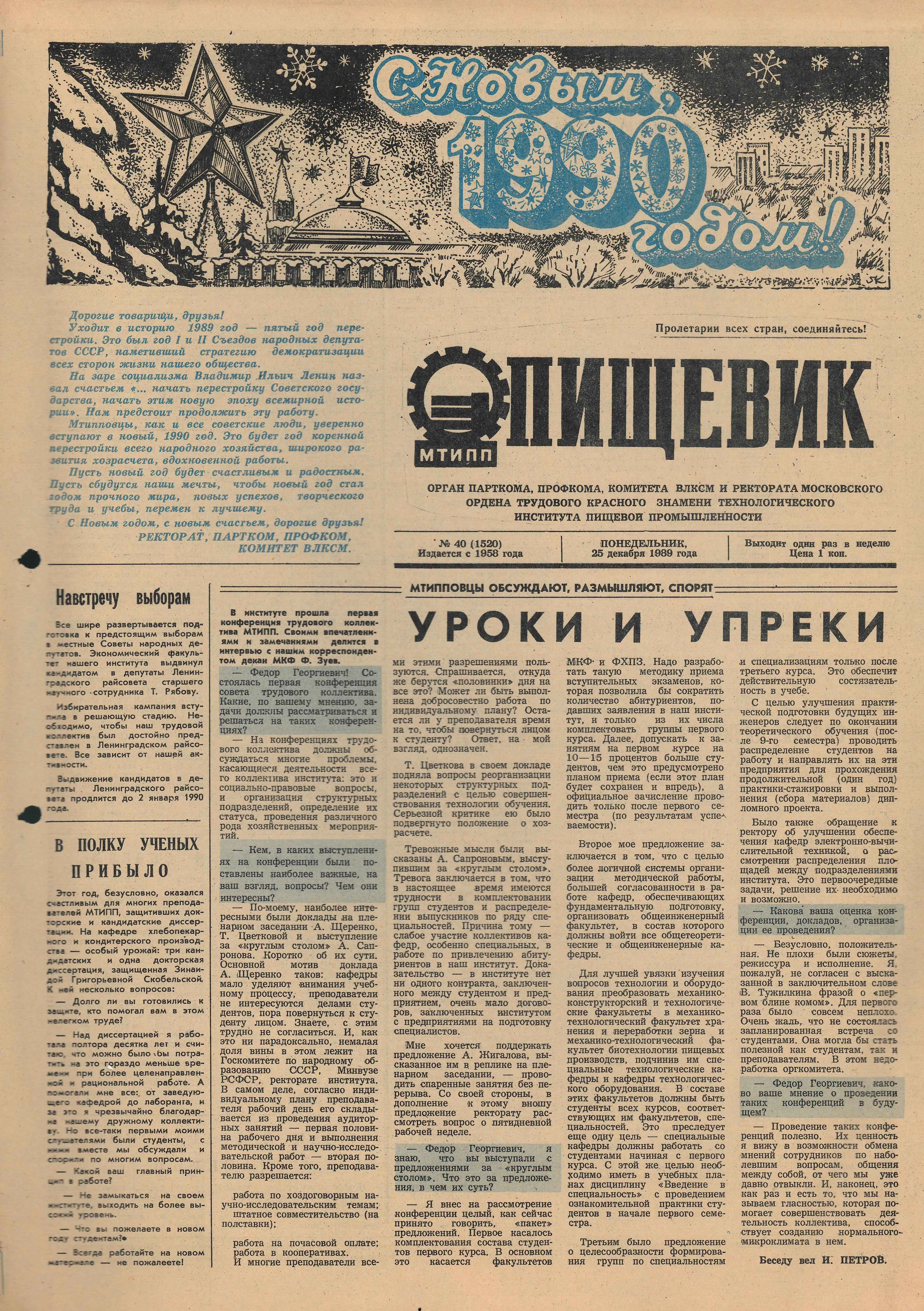 С 1958 г. выпускалась многотиражная газета института «Пищевик», в которой публиковались материалы о научных открытиях, практике и культурных событиях вуза. Издание выходило под кураторством старших преподавателей, там писали свои заметки и студенты, и профессора, и ректоры института. Газета выходила каждую неделю и стоила 1 копейку, ее всегда можно было найти в холле института.